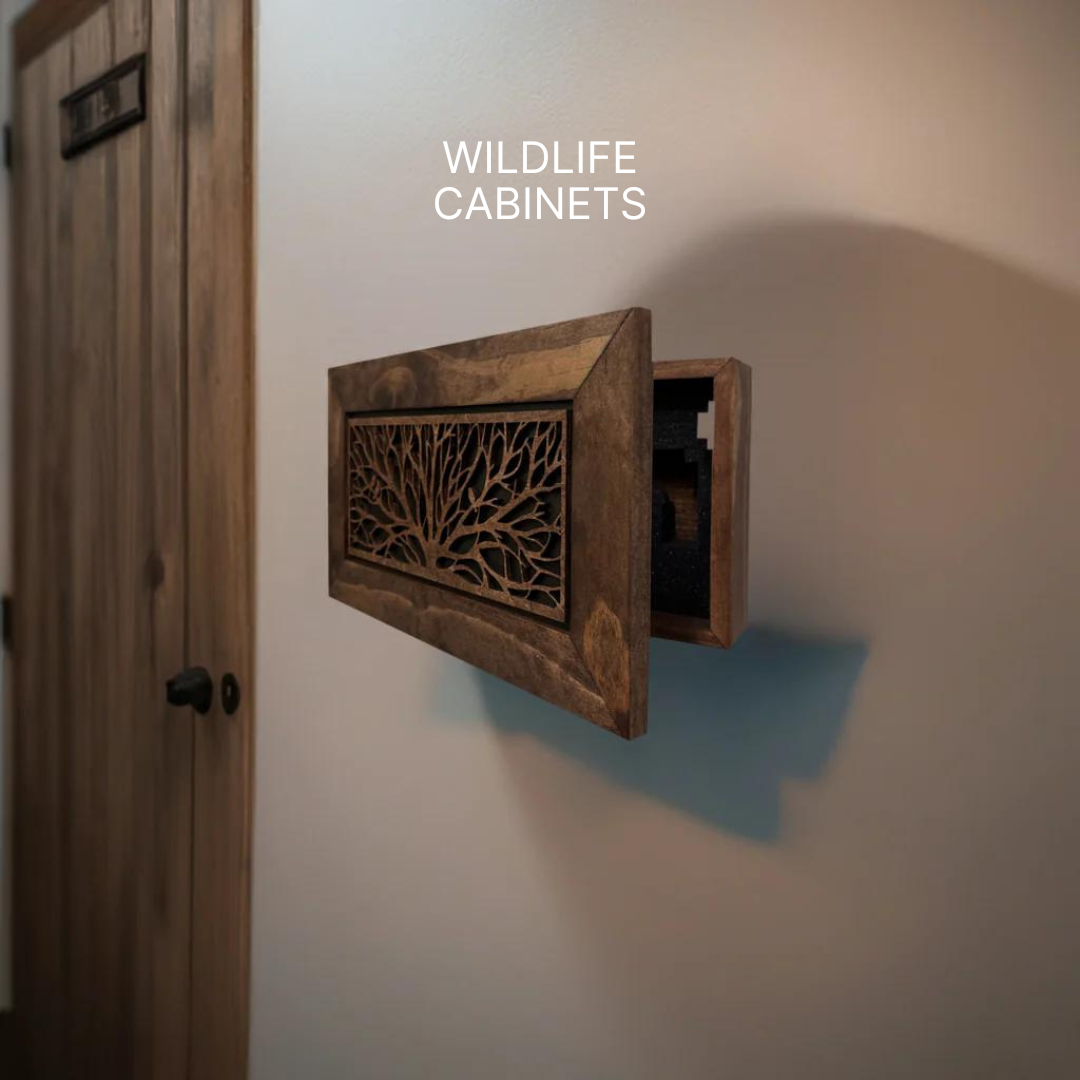 No one will know what’s inside! Secure your gun and other personal protection gear in our hidden gun cabinets. The cabinets are secured with a special lock so your firearm is secure yet quickly accessible when you need it!